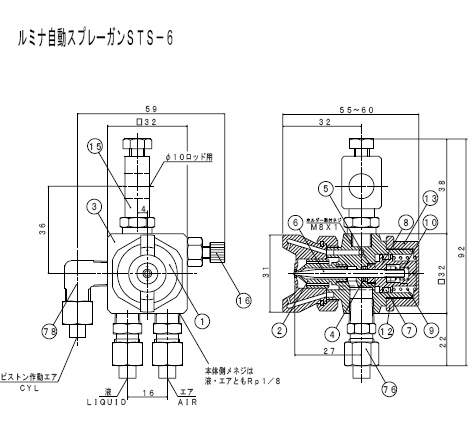 四、日本扶桑精机FUSOSEIKI自动喷头STS-6产品尺寸图: